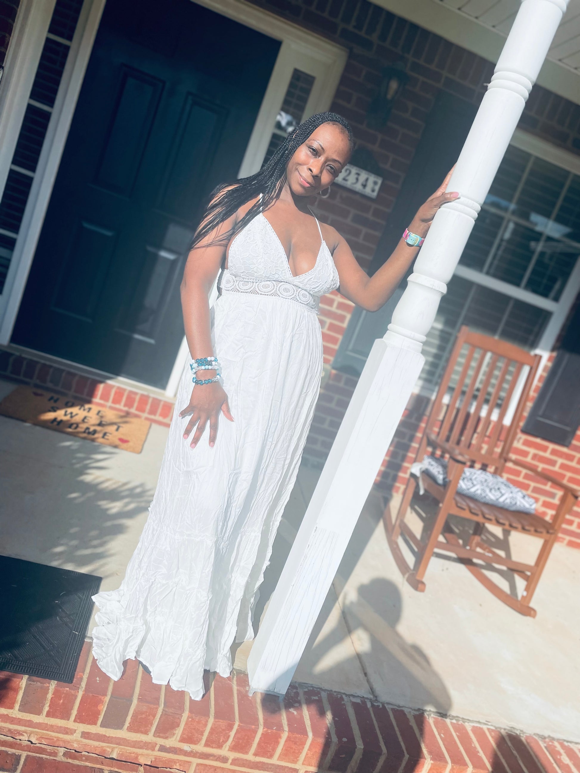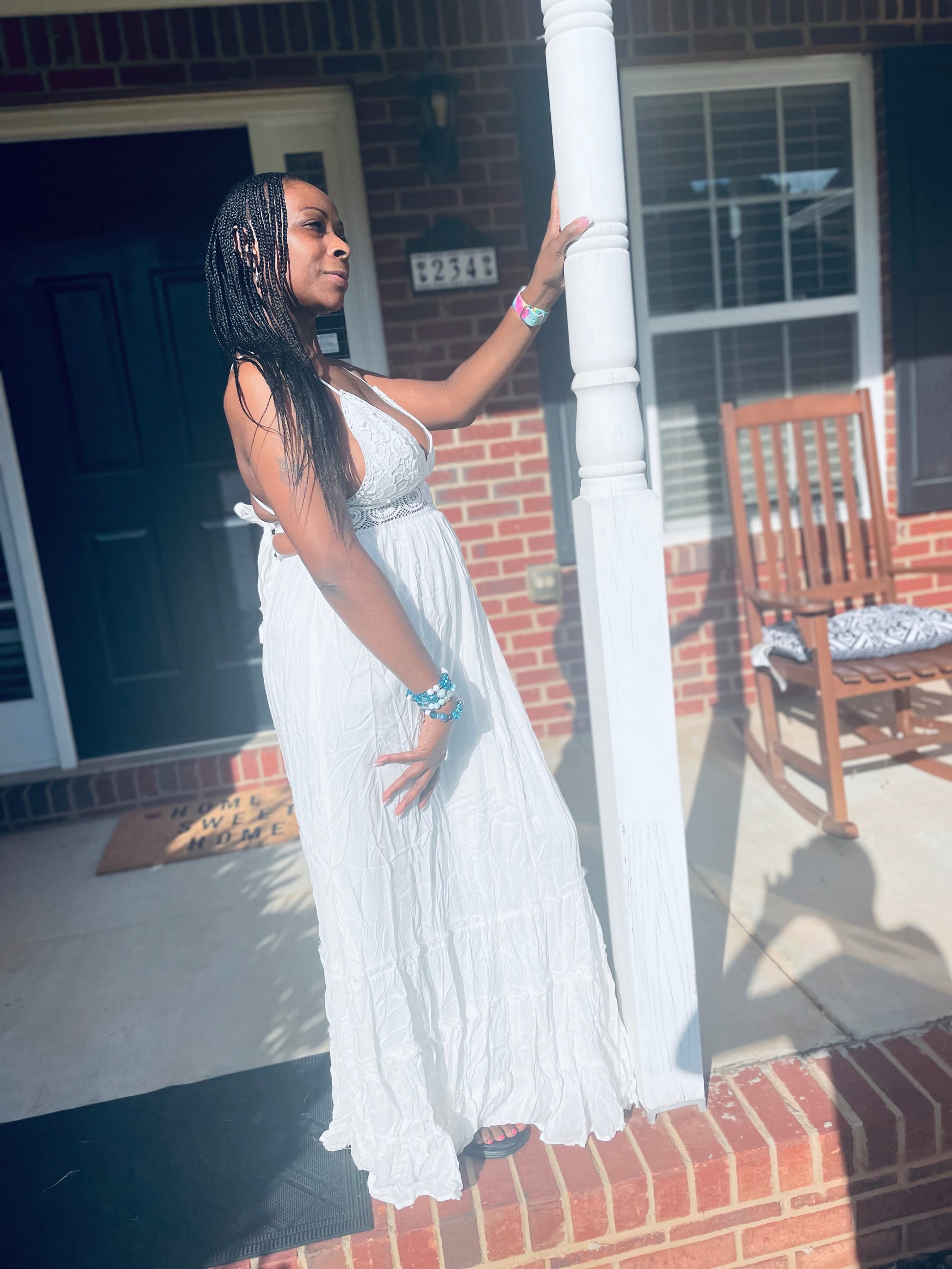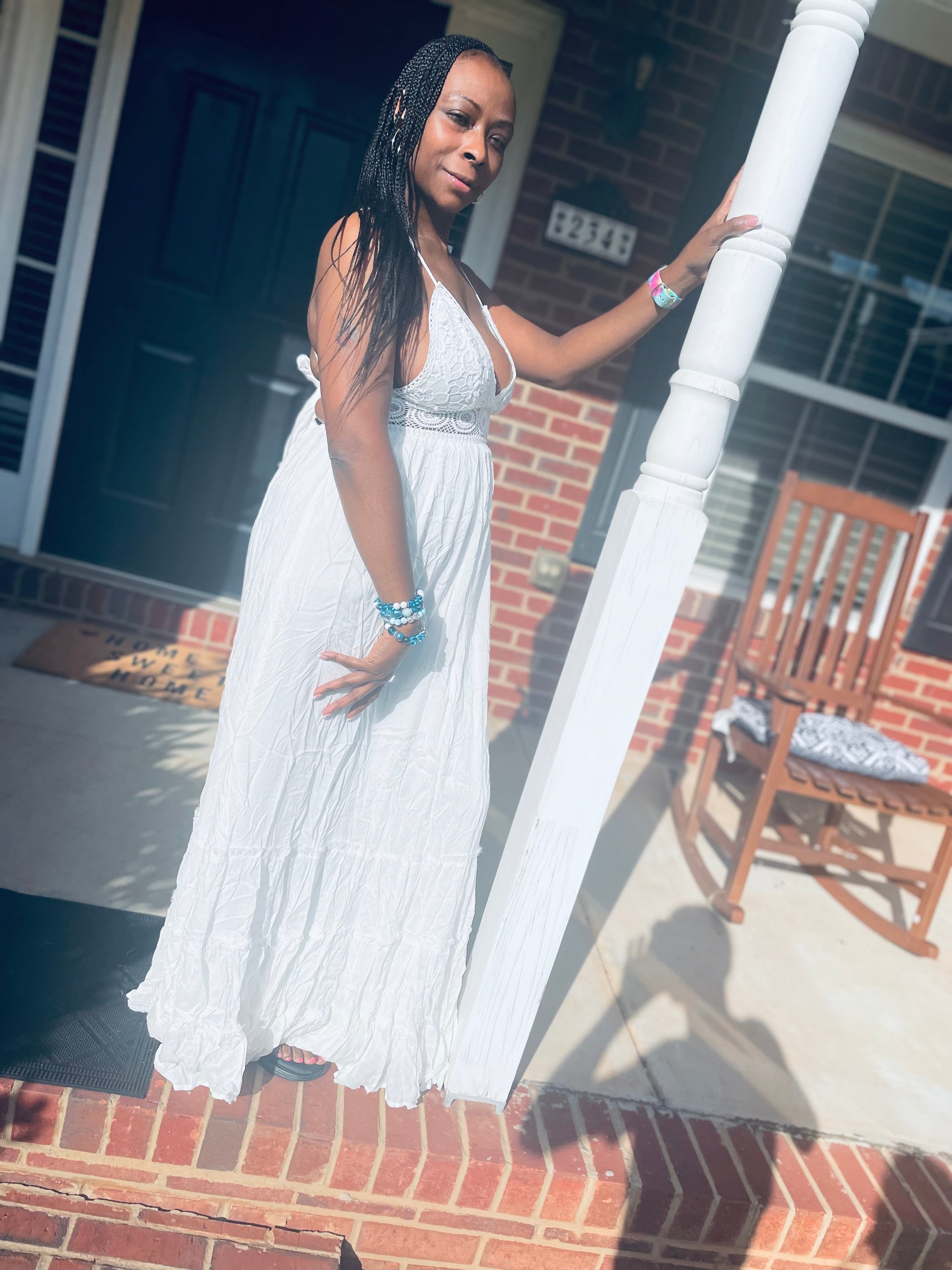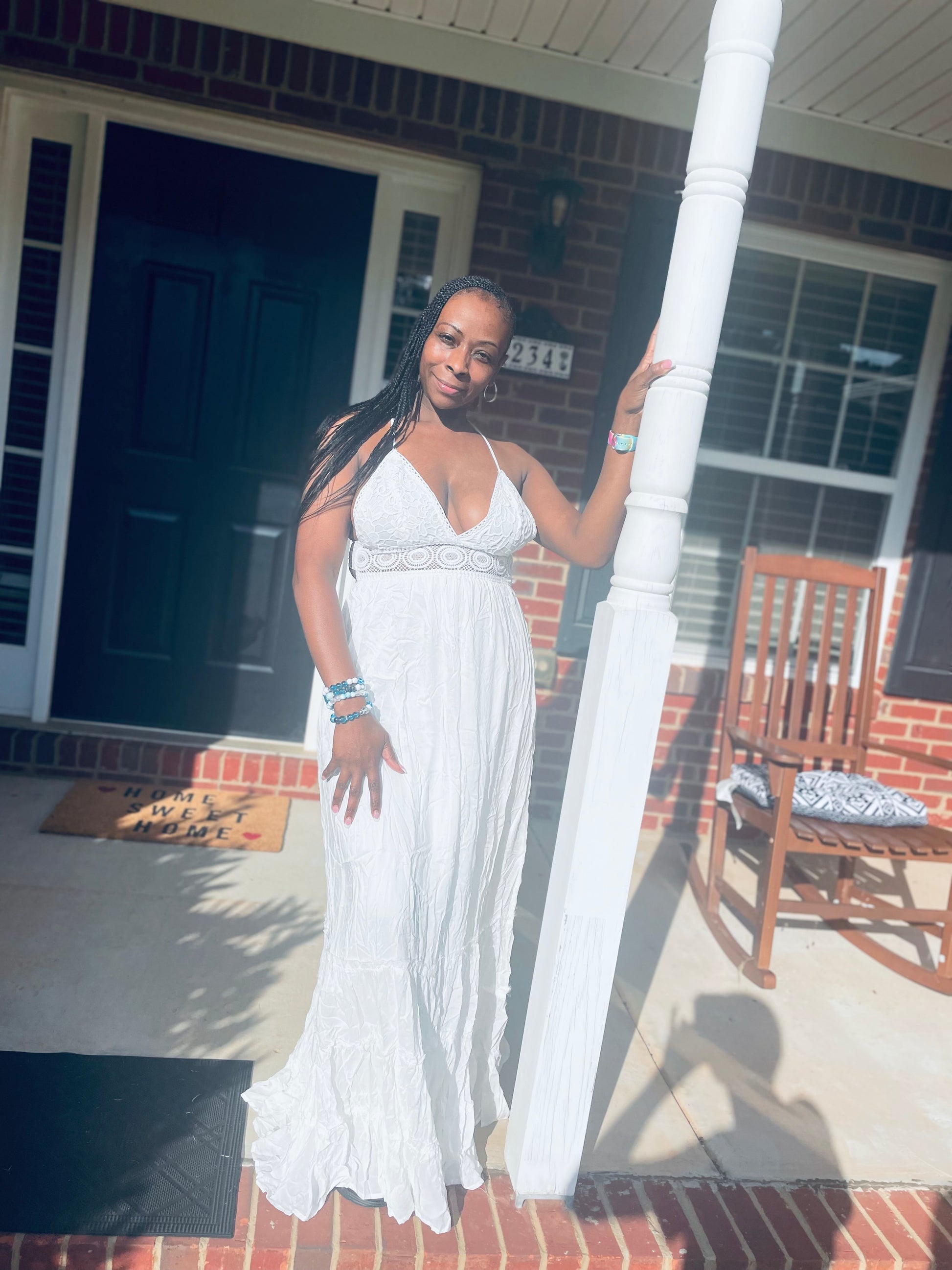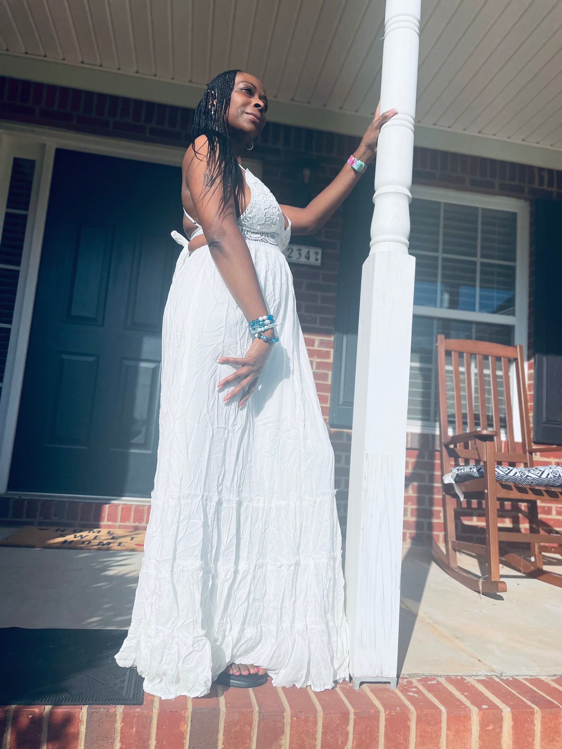 Introducing Elizabeth, a beautiful white dress that comes in a charming flowy pattern. Crafted from high-quality fabrics, this summer-ready style is perfect for any occasion. Model is wearing a Small for a flattering fit.