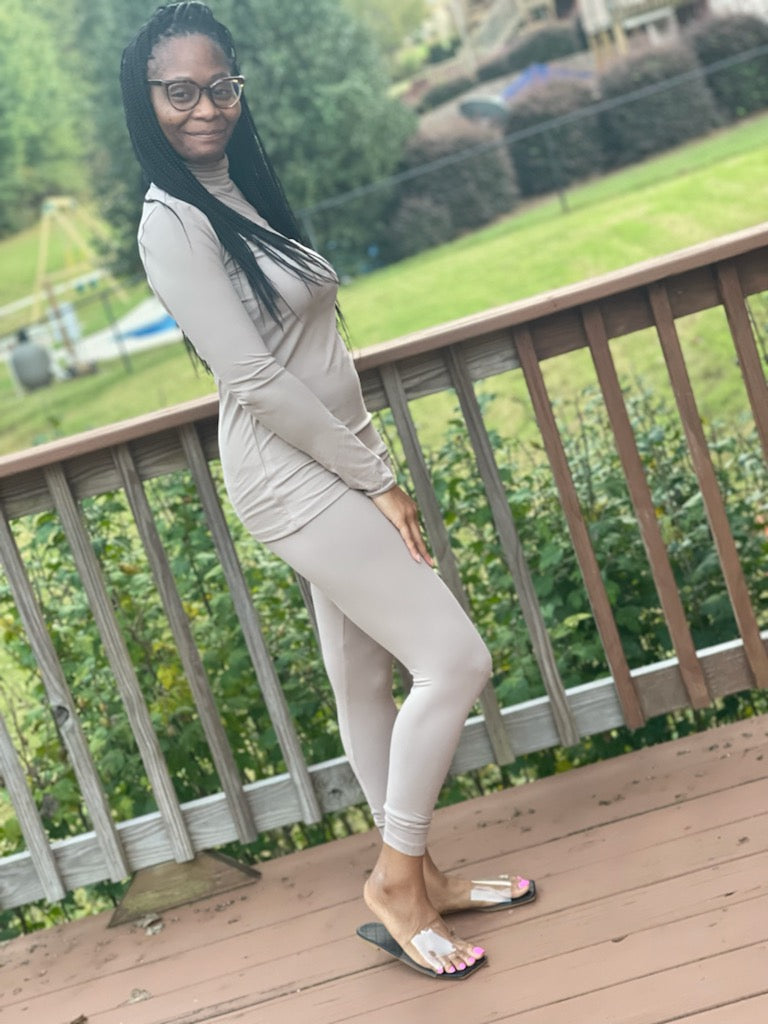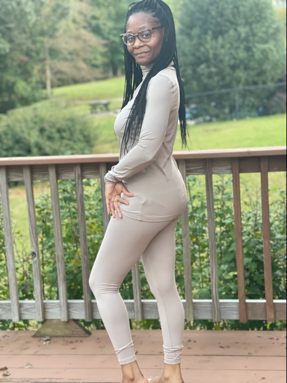 This stylish mocha leggings set is perfect for any occasion. Made from a soft and comfortable fabric, it's sure to keep you comfortable all day long. The beige color and classic design make it a timeless addition to any wardrobe.