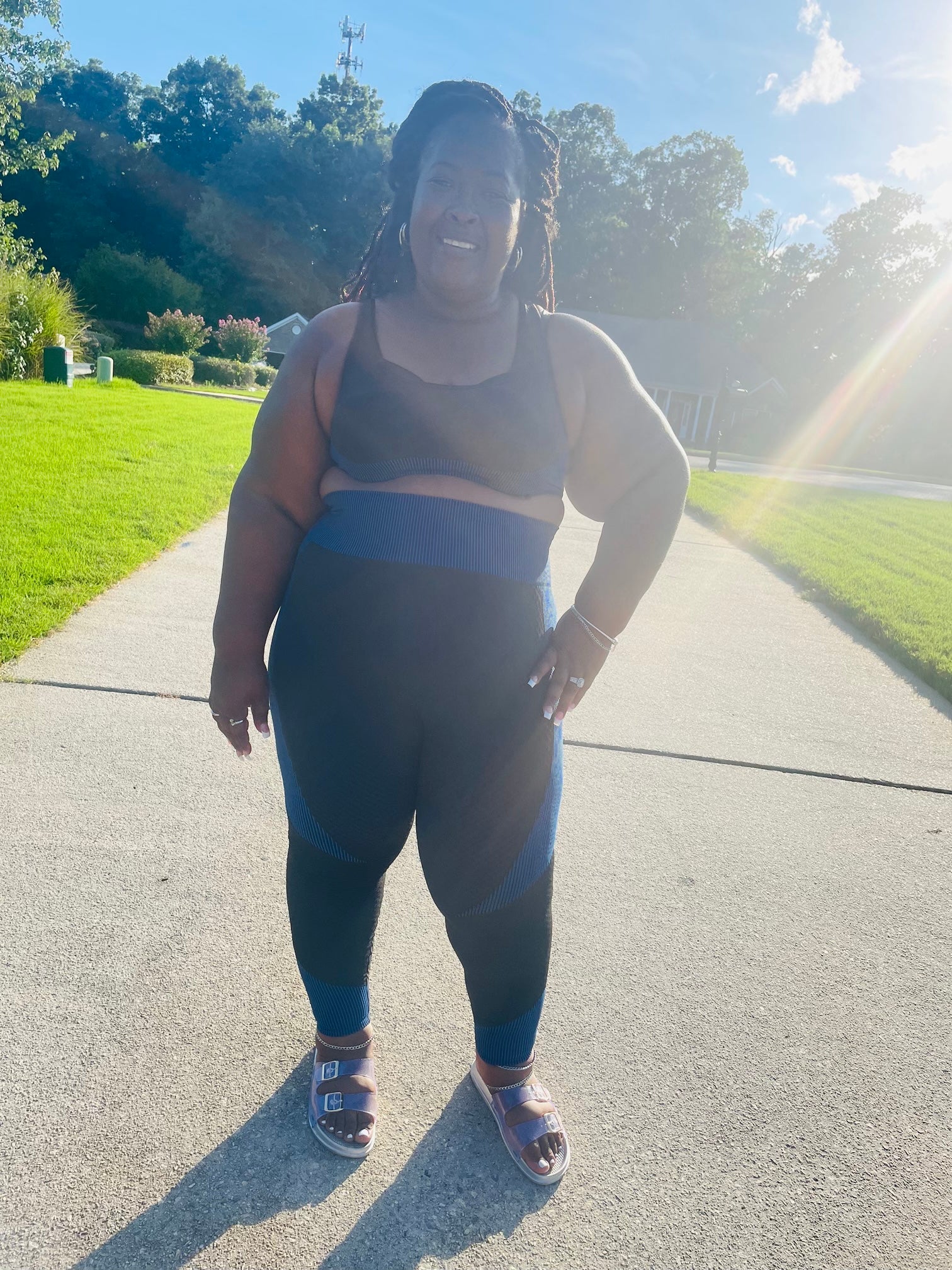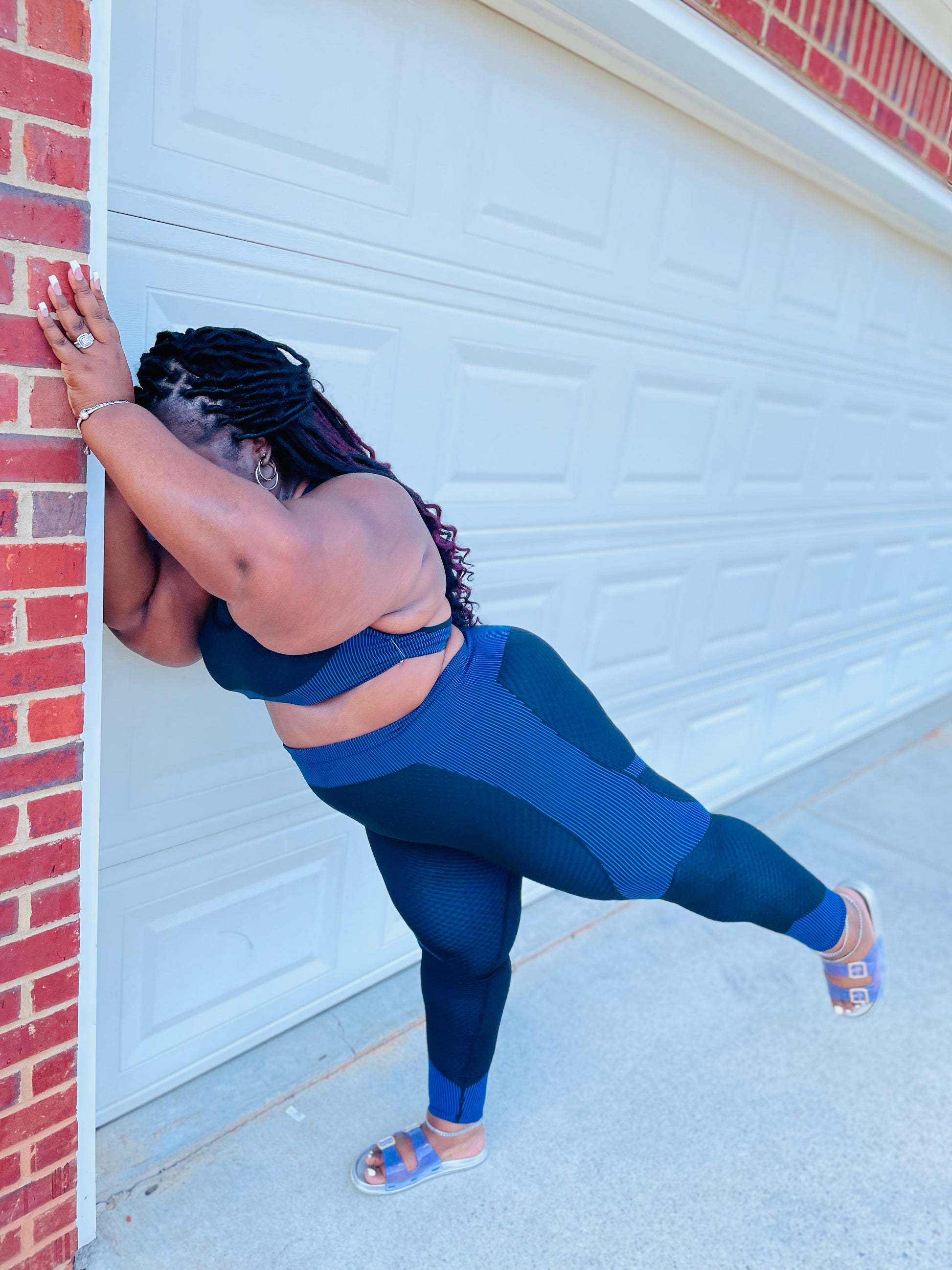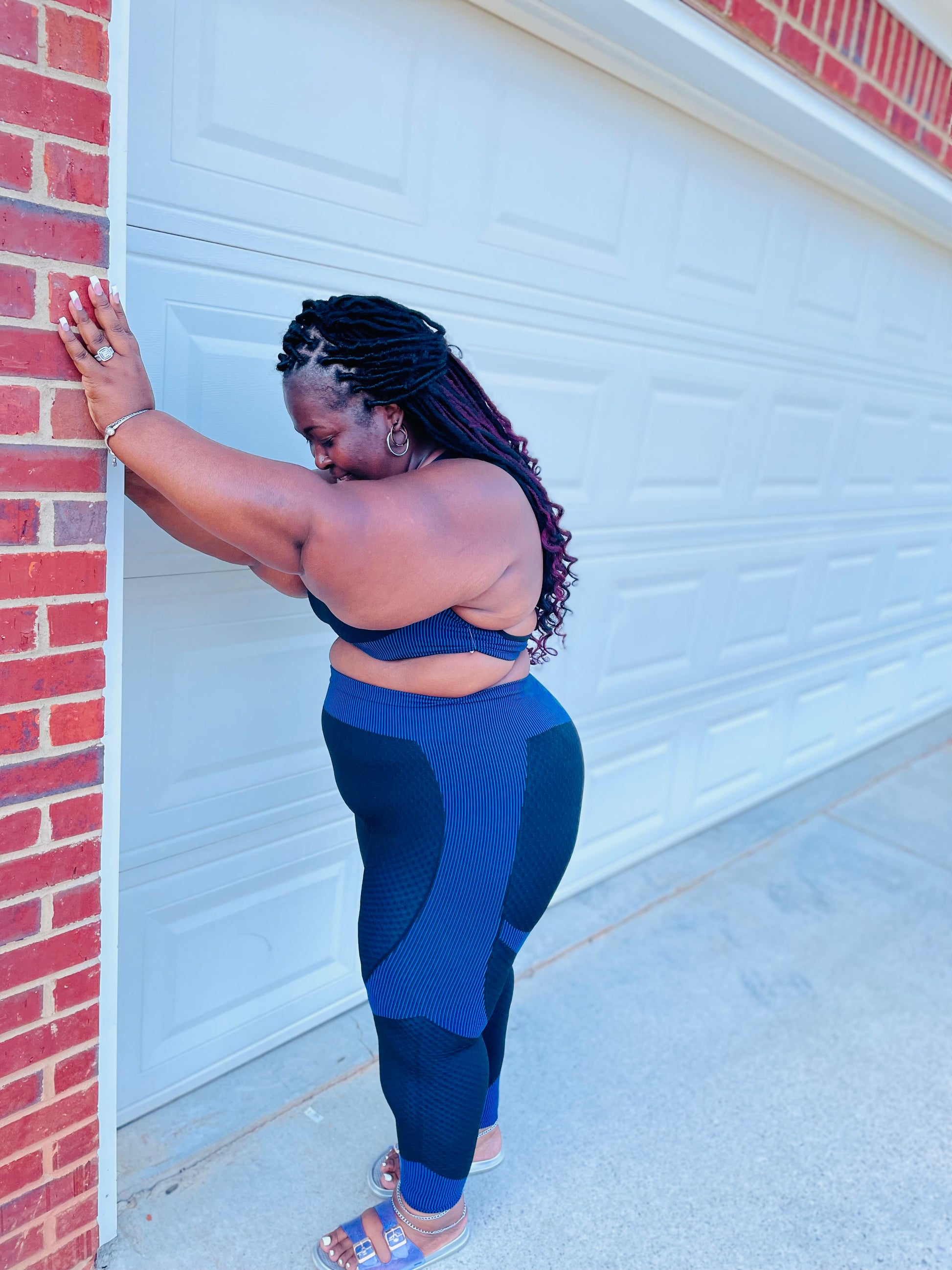 Tisha is a two-piece set featuring a blue and black bra and legging set. The set is crafted from breathable fabric with moisture wicking abilities for a comfortable fit during your workouts. The stylish design is perfect for yoga and running, so you can look and feel your best.
