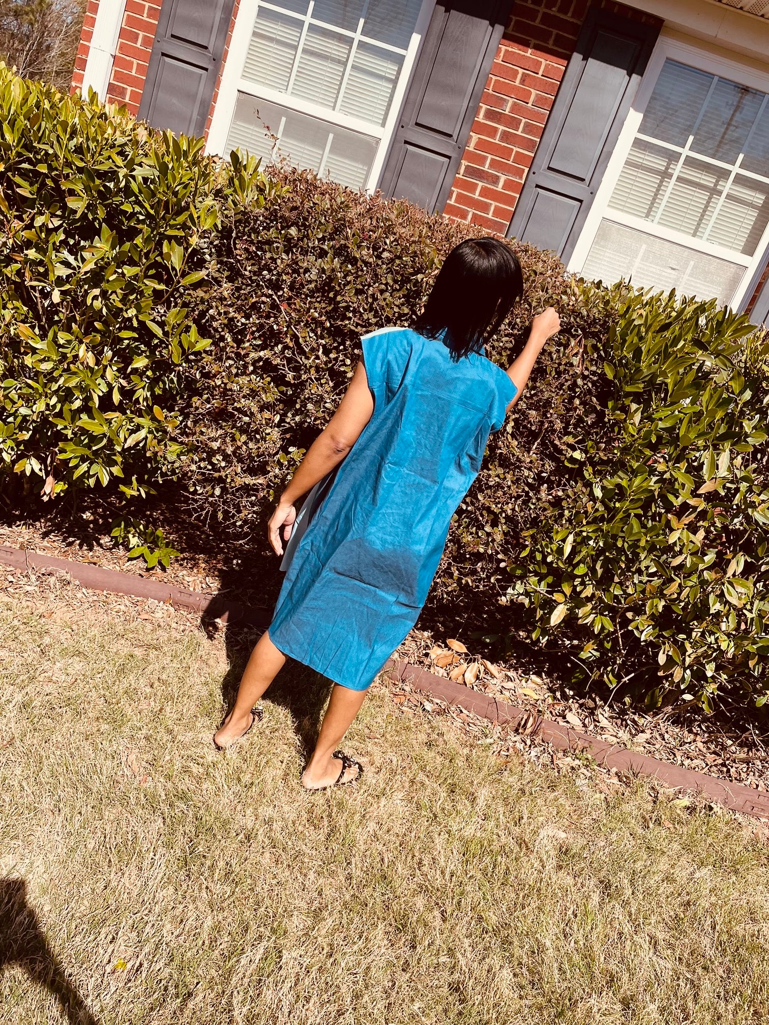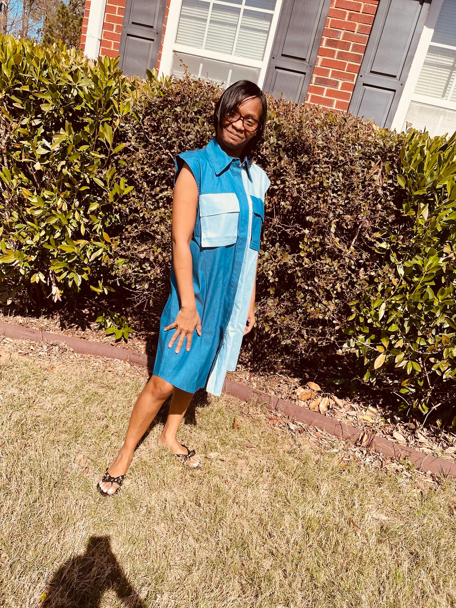 The Waves Dress is a stylish and comfortable choice for any occasion. It features two shades of blue and a front pocket for convenience. Crafted from breezy yet fashionable fabric, this dress will keep you cool during hot summer days.