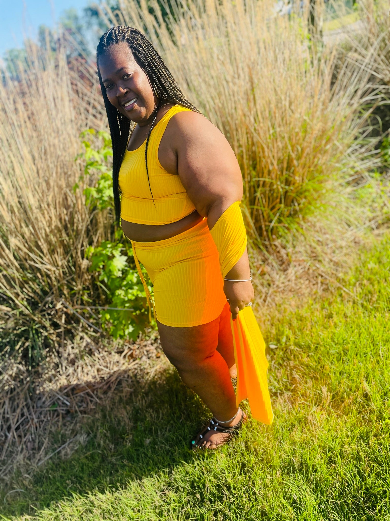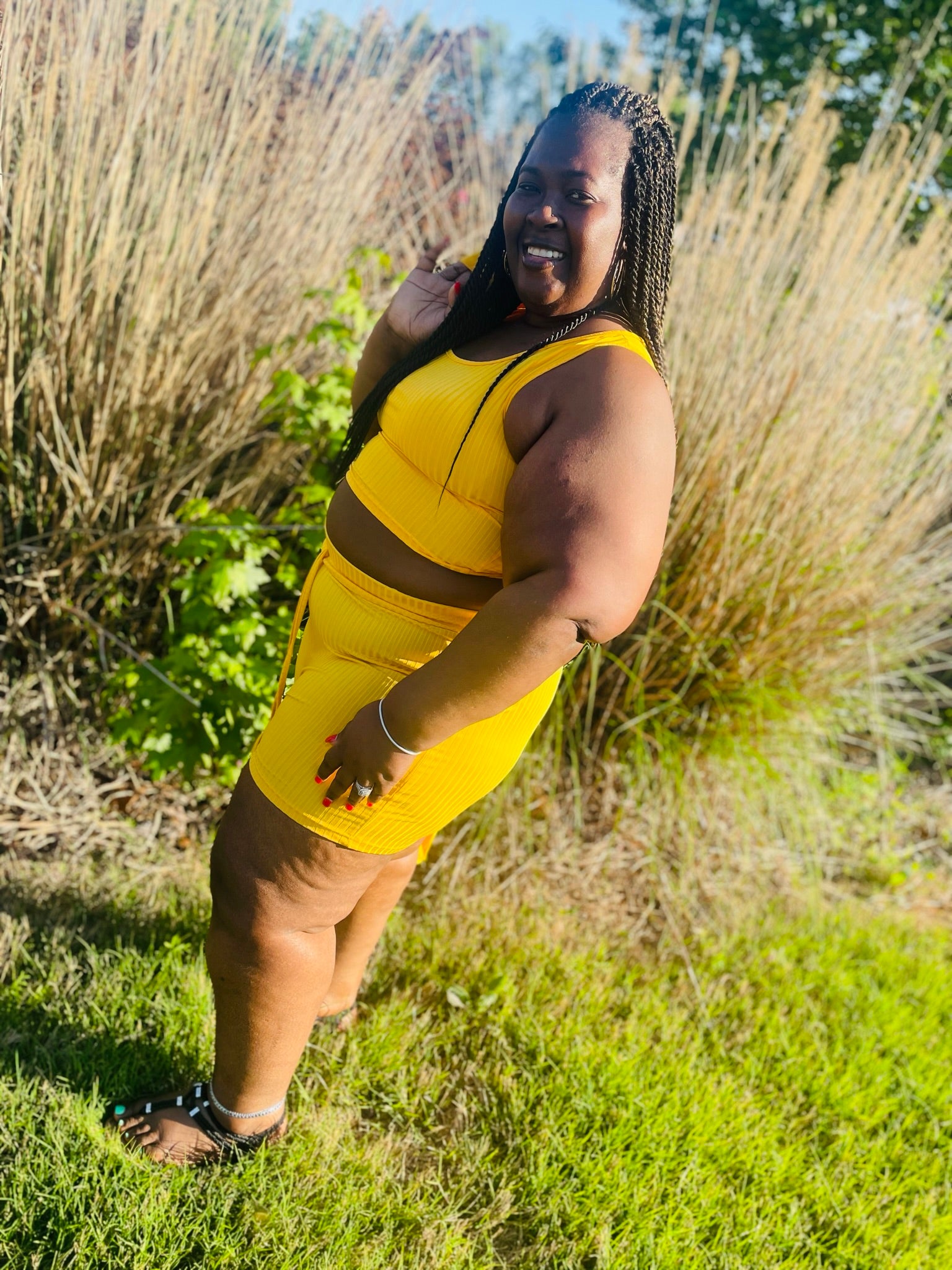 The Willow set is the perfect way to add a splash of summertime to your outfit. Crafted from a cool and breezy fabric, this 3 piece set is available in a bright yellow hue to brighten any day.